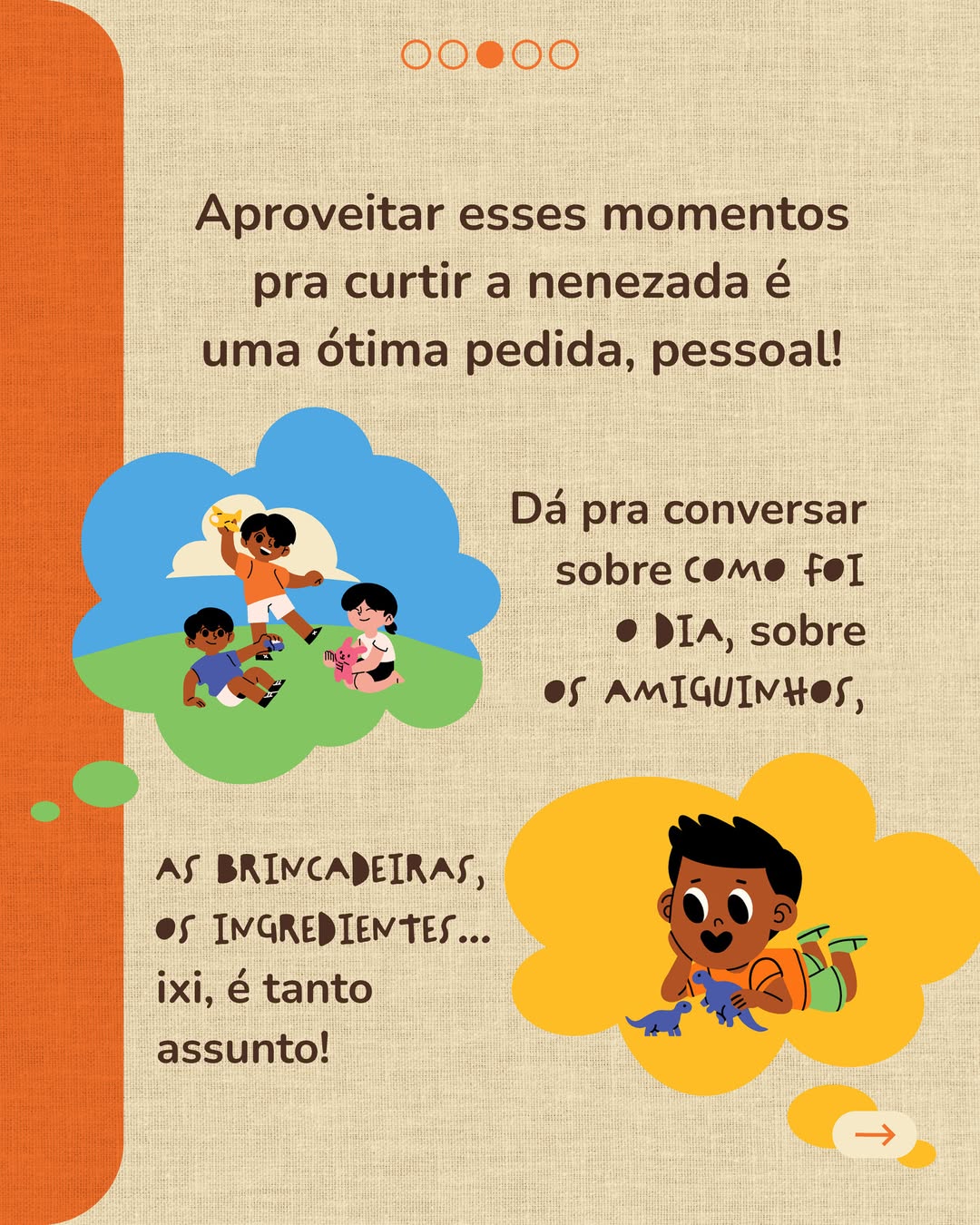 Comer direitinho é importante, claro, mas comer convivendo vale mil vezes mais! Então, lembra desse segredo que te contei na próxima vez que for comer com a nenezada, combinado?