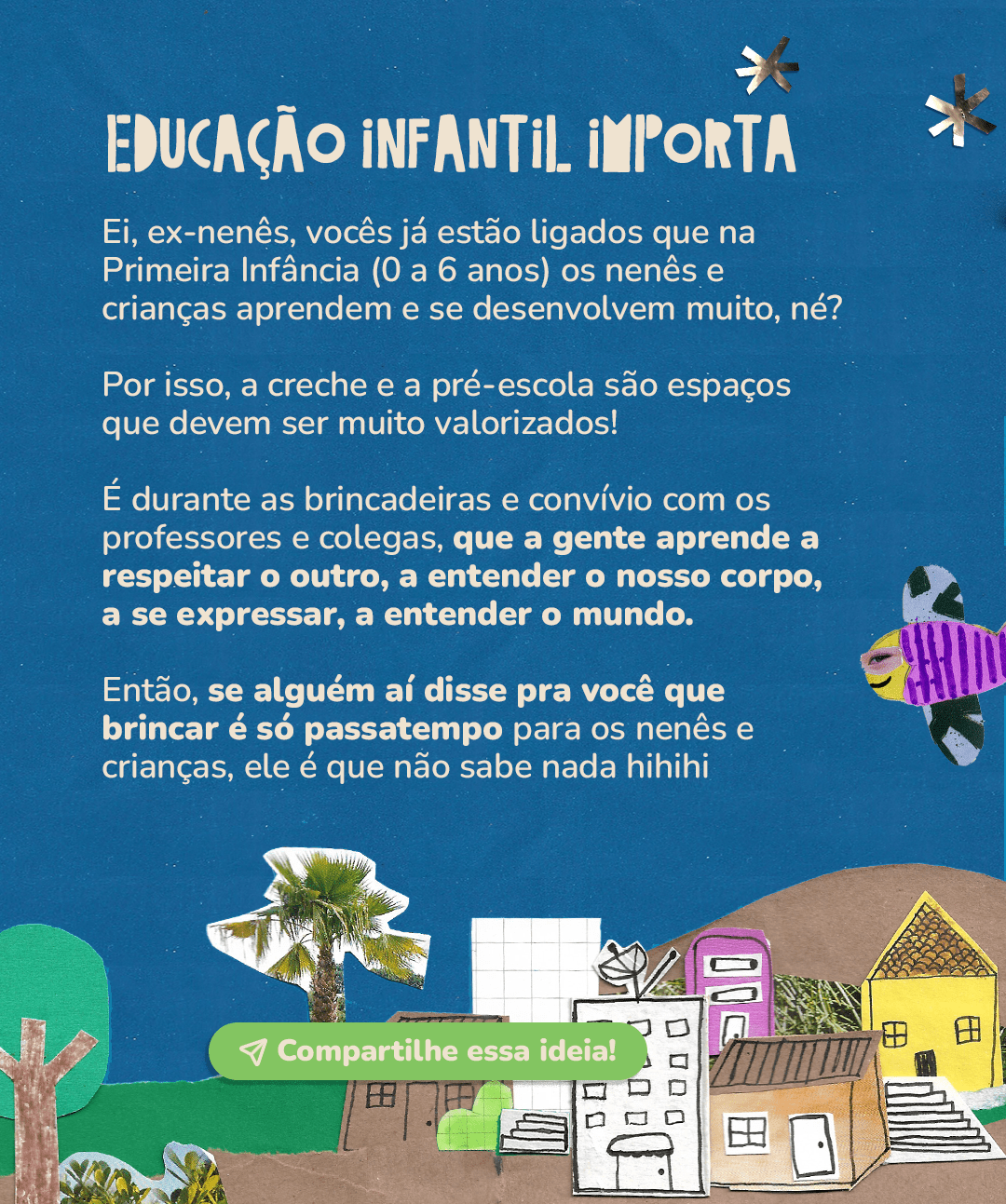 Tô de volta e hoje nós vamos falar sobre EDUCAÇÃO INFANTIL! Vocês estão ligados que a nenezada aprende e se desenvolve muito de vários jeitinhos diferentes e a creche e a pré-escola podem ajudar e muito nesse processo, né?