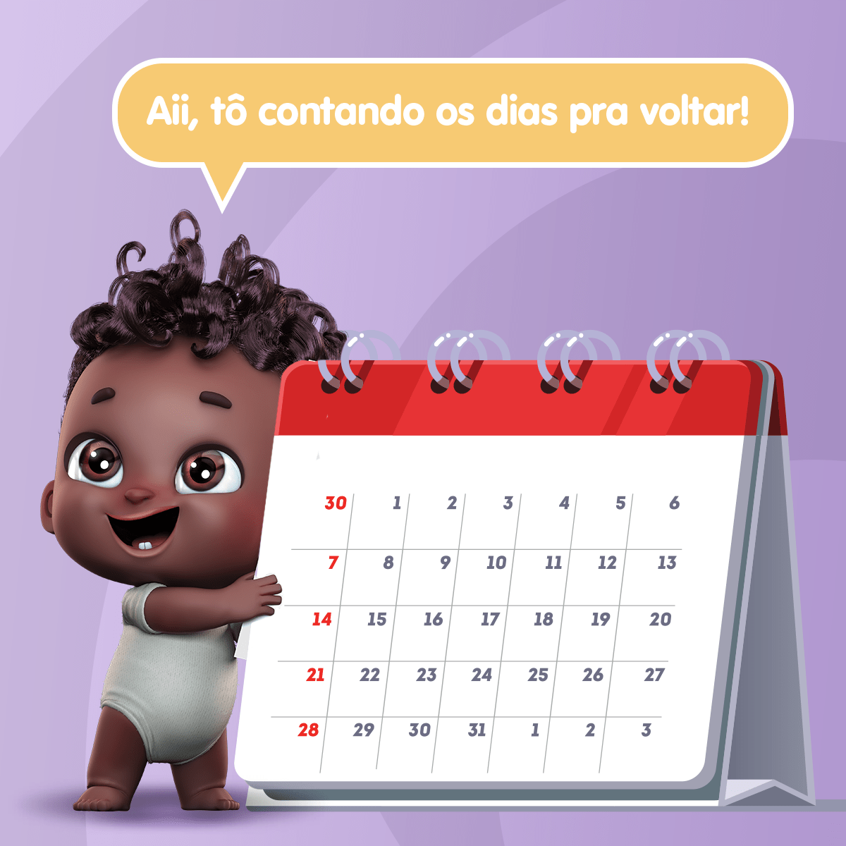 Tô com saudade da minha professora, das brincadeiras, do recreio, dos meus amiguinhos....e o seu nenê, tá assim também?