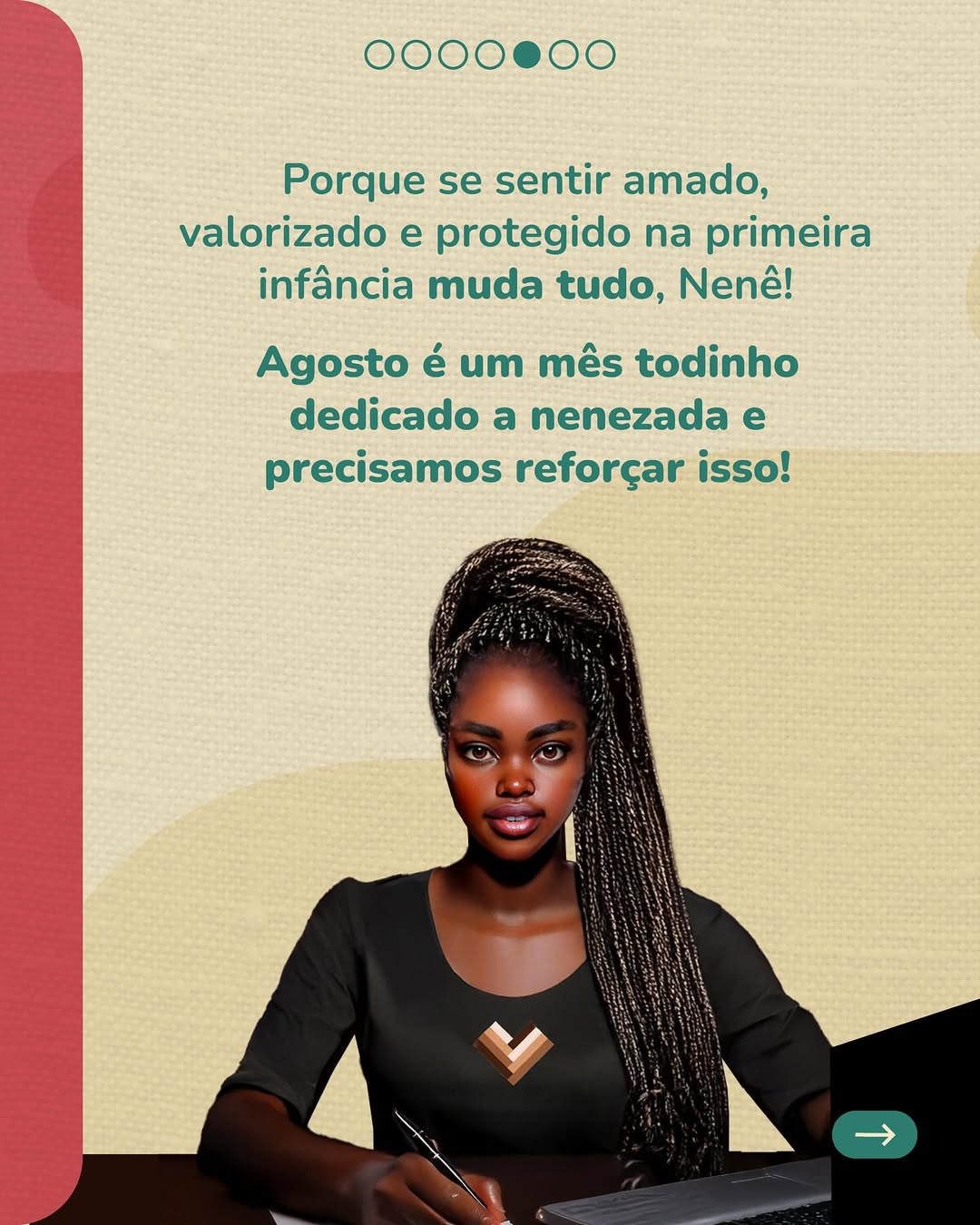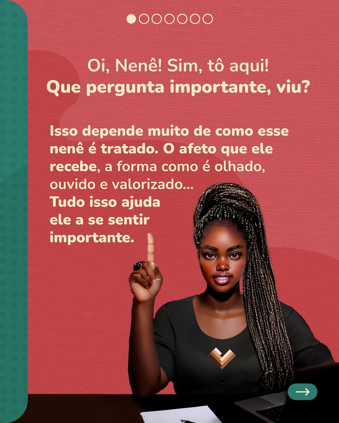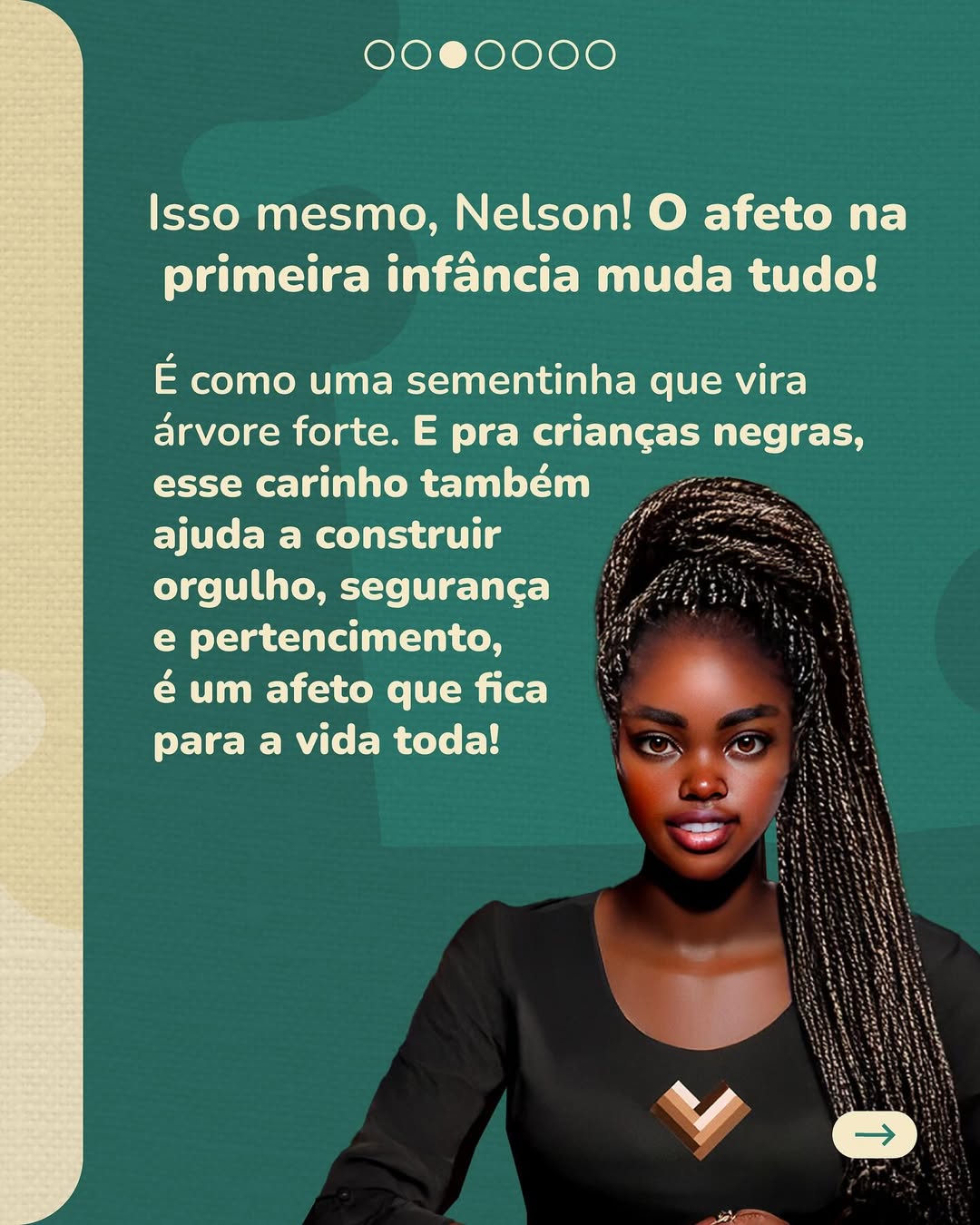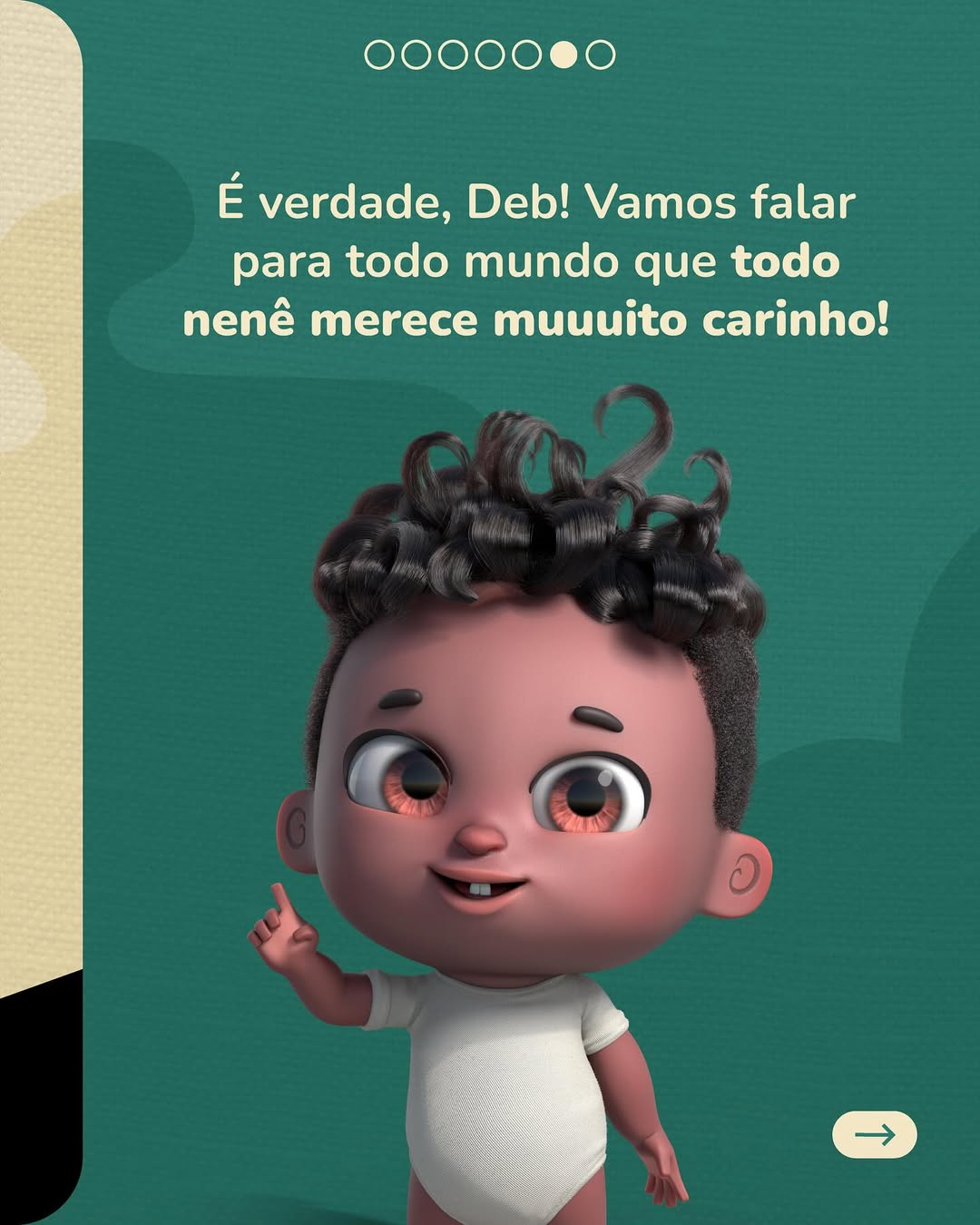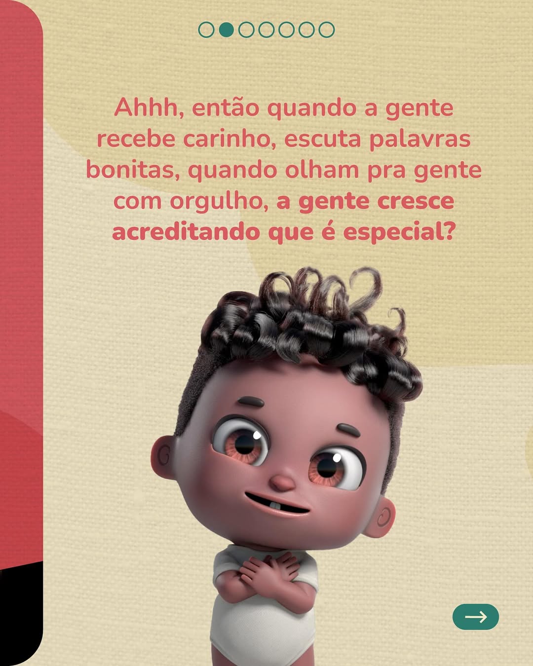 Hoje a gente conversou sobre a importância da nenezada se sentir vista, amada, protegida e valorizada. Já parou pra pensar que a maneira como as pessoas tratam as crianças, e até mesmo as palavras que usam, podem ficar pra toda a vida? E que principalmente para os bebês e crianças negras, como eu, ouvir sobre a beleza da nossa cor e do nosso cabelo, por exemplo, traz um sentimento de orgulho e pertencimento que faz toda a diferença pra nossa auto-estima?