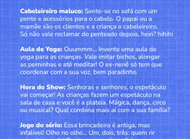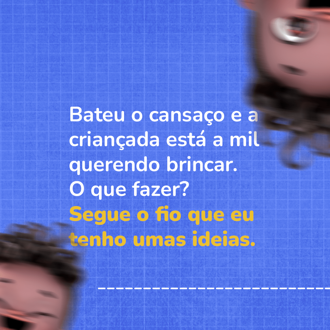 Crianças cheias de energia e papais e mamães super cansados… Será que esta combinação dá certo? Trouxe aqui umas ideias de brincadeiras para esse momento! E de naaaada, ex-nenês! hihihhi
