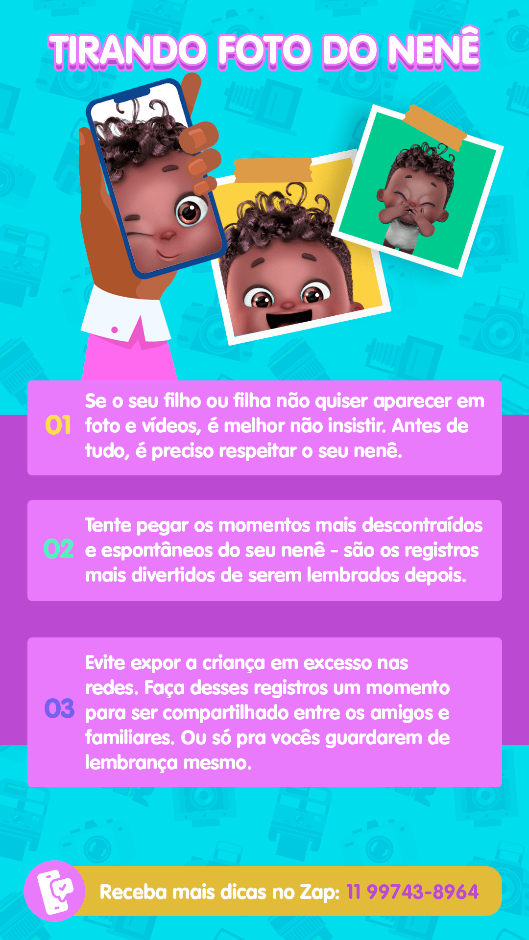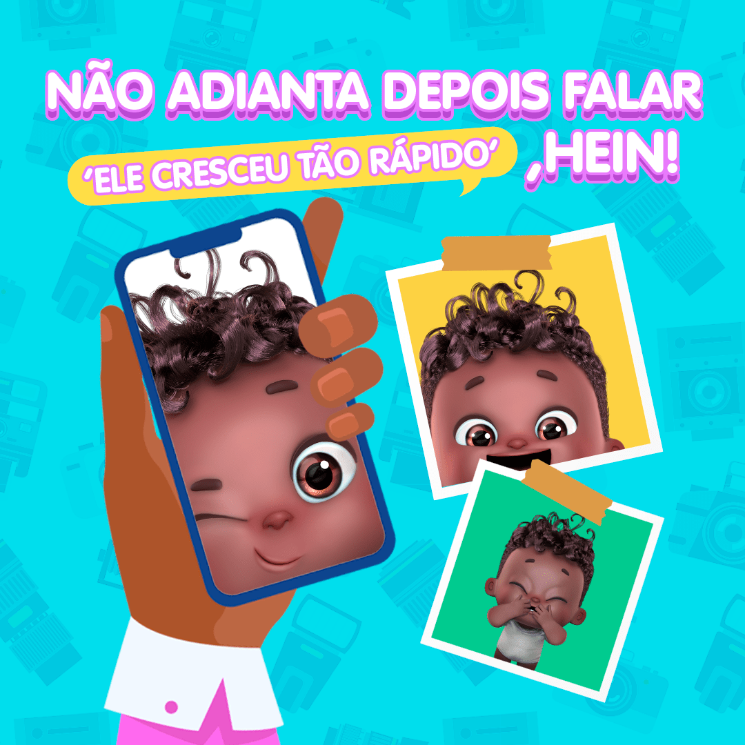 A cada piscada que vocês dão, nós nenês crescemos um pouquinho, né? Hihihi É rápido mesmo! Então, sabe o que é importante pra não se arrepender depois? Lembrar de registrar esses momentos, sempre que der.