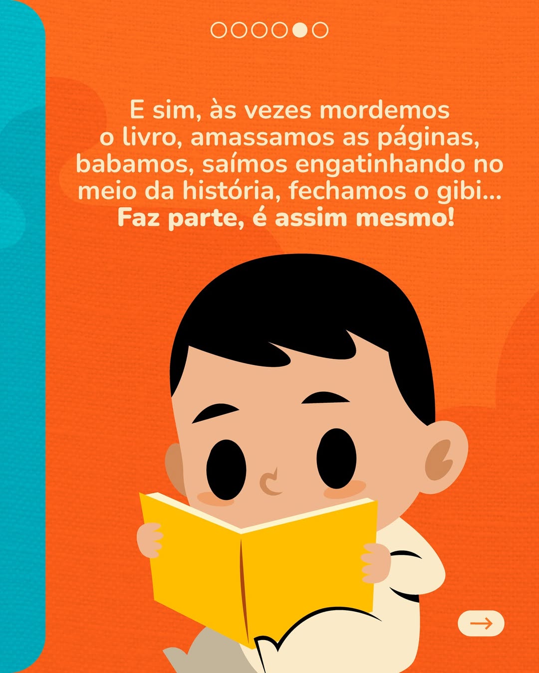 Essa leitura para os pequeninos tem até um nome chique – chama “literatura de colo", sabia? E sim, a gente pode ler no colo, mas também pode ser deitadinho na cama, na rede, ou sentado no sofá, tanto faz! O que importa é que eu A-D-O-R-O quando o papai ou a mamãe lêem pra mim ! Me sinto feliz, envolvido e vou viajando junto com a história e as ilustrações. Experimenta por aí também, ex-nenê!