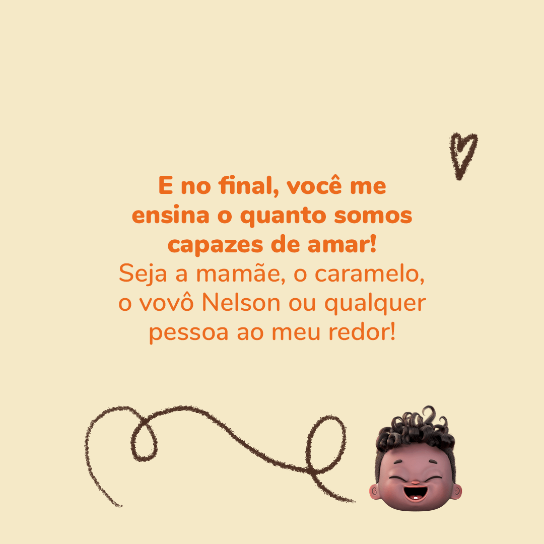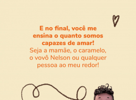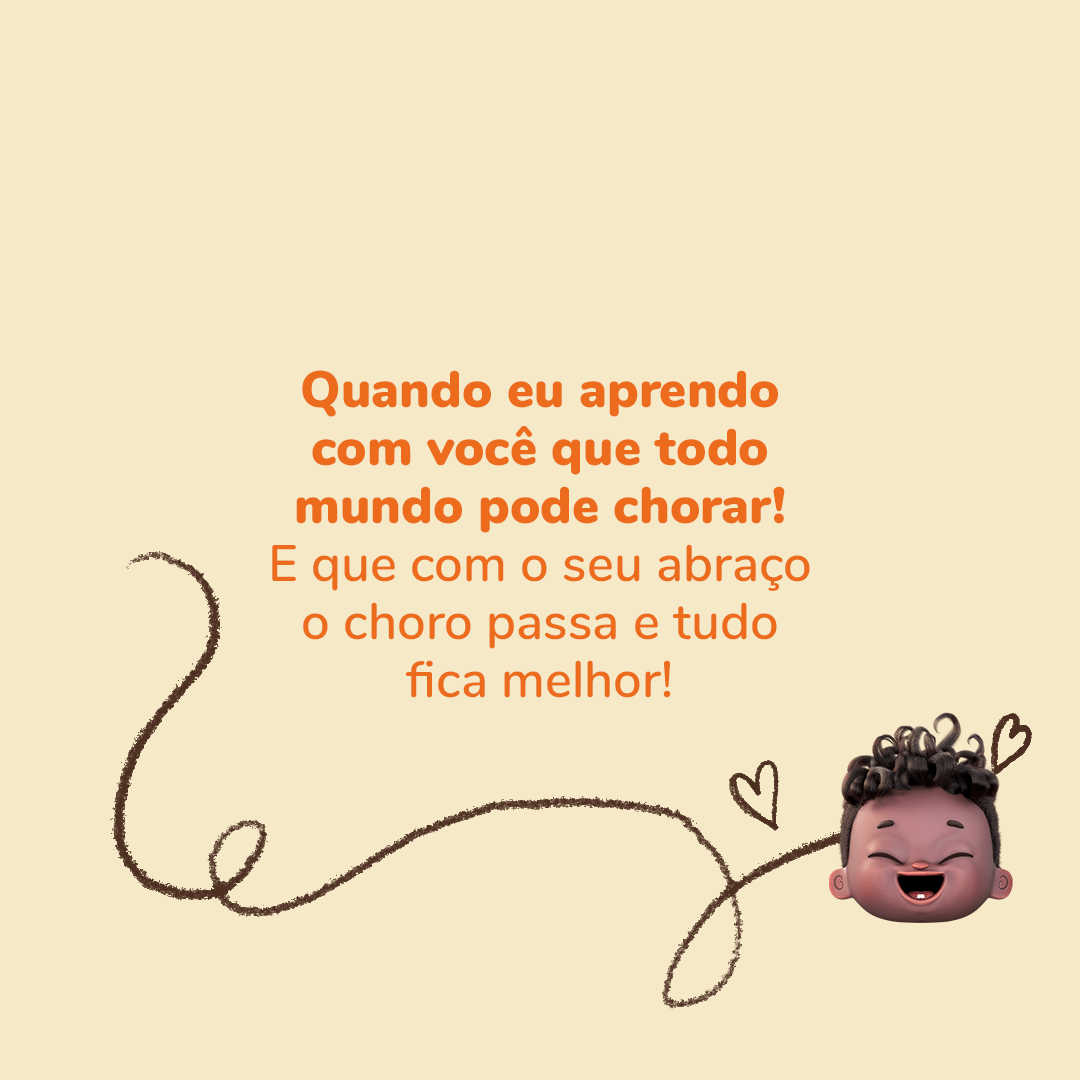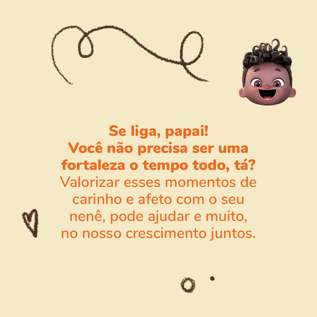 O Dia dos Pais tá chegando e essa semana eu fiquei ainda mais agarradinho com o meu papai! E eu adoro esse tempo que passamos juntos… ele me faz rir muito, conta historinhas e me dá váaaarios beijos e abraços. Isso é tão importante pro meu crescimento! São esses momentos de afeto que me ensinam que somos capazes de amar. Seja a mamãe, o caramelo, o vovô Nelson ou qualquer pessoa ao meu redor! Agora tchau que eu quero brincar mais com o meu papai!