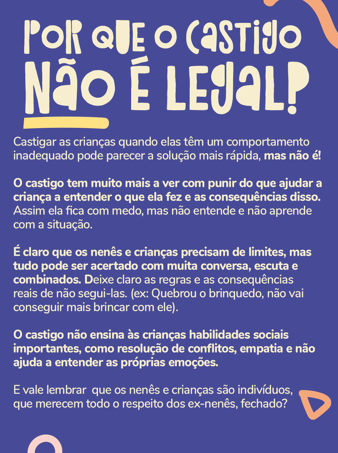 Esses dias uma nenelover me perguntou o por que do castigo não ser legal e hoje eu dei o papo sobre isso!