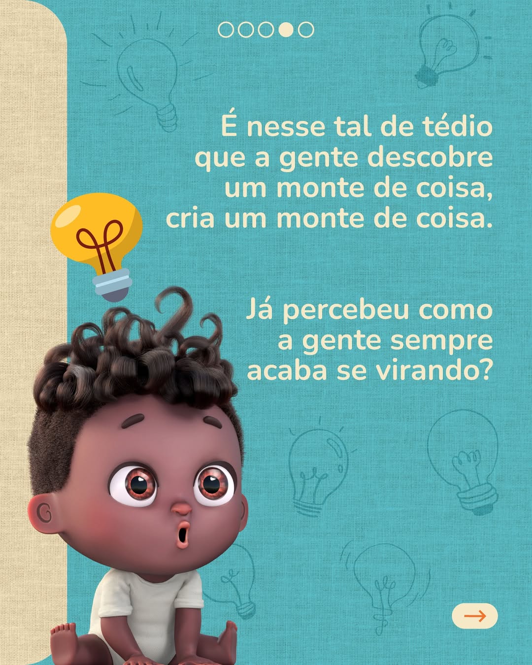 Óbvio que eu amo brincar com o papai, a mamãe e com toda a minha família (e eles também, que eu sei!), mas nem sempre eles podem parar tudo. Daí fico bem chateado, claro, mas depois vou relaxando e, quando vejo, estou ali inventando várias coisas legais. Observa como é na sua casa e veja se não acontece o mesmo?